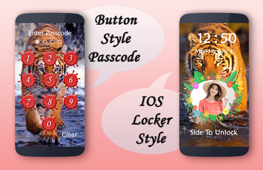 in this app you also set your name with your photo. tiger DIY Lock Screen is application to protect your smartphone through using pin/passcode or pattern, no one can enter into your phone without correct four digit password or current pattern.