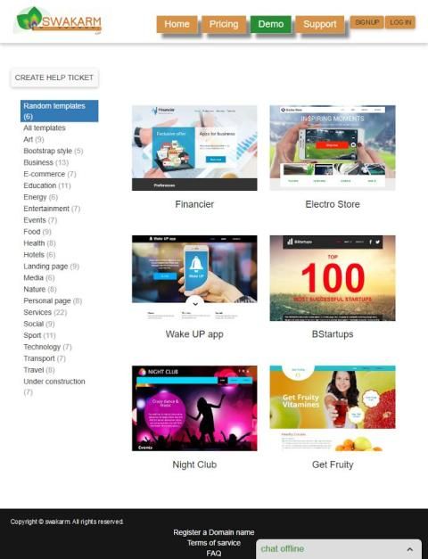 Создайте свой собственный веб-сайт в считанные минуты с помощью нашего простого создателя сайта. Построить стандартный веб-сайт или коммерческий сайт E. Нет необходимости кодирования, просто перетащите его, чтобы создать .. Лучшие компоненты не включены, как карты Google, вы трубку, кнопки социальных сайтов, интернет-шлюзов оплаты, корзина для покупок и многое другое ... даже HTML также доступна для разработчиков.