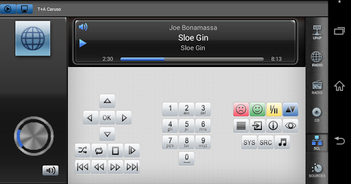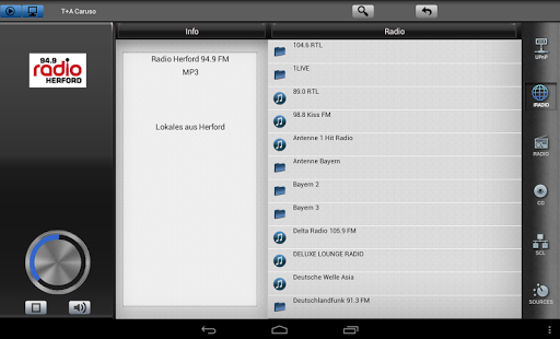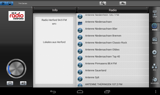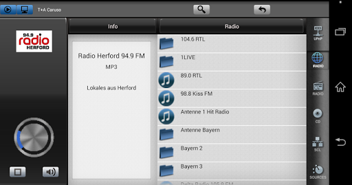 The App can also display information relating to the selected source or the medium currently playing.