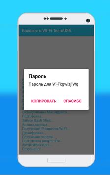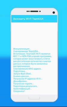 Он показывает метод шифрования, имя SSID Wi-Fi и силу сигнала. После того, как вы выбрали данную сеть Wi-Fi, она притворяется, что она взламывает некоторые сложные сообщения Wi-Fi. Вы можете использовать его, чтобы обмануть своих друзей и семью!
