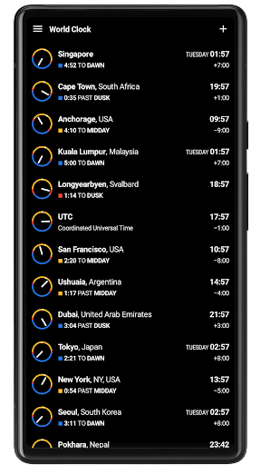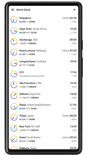 Добавьте места по всему миру и проверьте местное время, время восхода солнца, заката и рассвета, сумерки, а также подробный прогноз погоды.