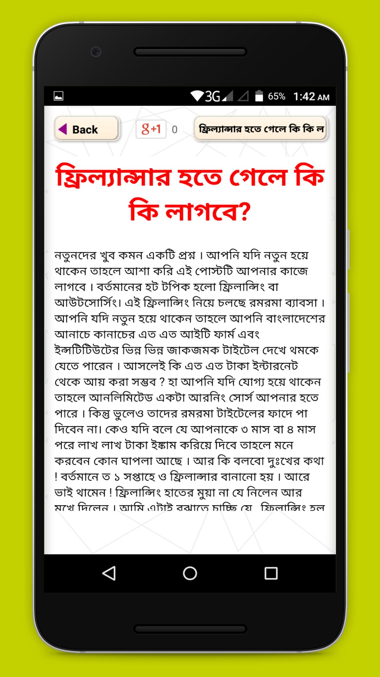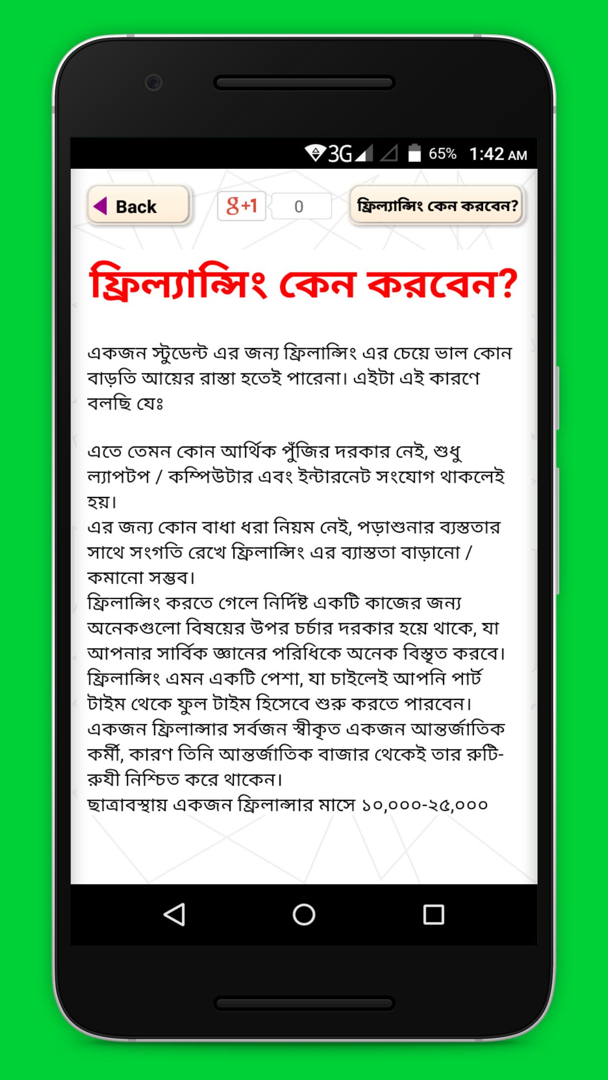 যারা কলেজ বা বিশ্ববিদ্যালয়ের ছাত্র অথবা পড়াশোনা শেষ করে ঘরে বসে চাকরির প্রস্তুতি, bcs preparation বিসিএস প্রস্তুতি অথবা ব্যাংক জব অথবা job exam চাকরির পরীক্ষা দিচ্ছেন তারা সহজেই এর পাশাপাশি অনলাইন ইনকাম বা ইন্টারনেটে আয় করার চেষ্টা করতে পারেন। ইউটিউব থেকে টাকা আয়, ইউটিউব মার্কেটিং, অ্যাফিলিয়েট মার্কেটিং দিয়ে আয়, ওয়েব ডিজাইন, গ্রাফিক্স ডিজাইন, এসইও, মার্কেটিং ইত্যাদি বিভিন্ন ধরনের কাজ দিয়ে অনলাইনে টাকা আয় করা যায়। ফ্রিল্যান্সিং ও আউটসোর্সিং করে অনলাইন ইনকাম online income এর বিভিন্ন দিক নির্দেশনা নিয়েই আমাদের এই freelancing bangla অ্যাপ যা আশা করি আপনাদের কাজে লাগবে। অনলাইন ইনকাম সম্পর্কে জানতে আজই ডাউনলোড করুন। ভাল লাগলে বন্ধুদের সাথে শেয়ার করুন এবং ৫ স্টার দিয়ে আমাদেরকে অনুপ্রাণিত করুন। ধন্যবাদ।