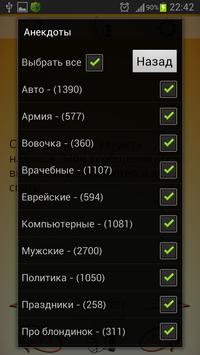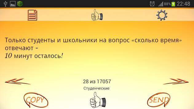 Понравившийся анекдот можно добавить в избранное, скопировать в буфер, послать на смс, вконтакте, одноклассники и т.д. (любое установленное на телефоне приложение, которое принимает текст)
