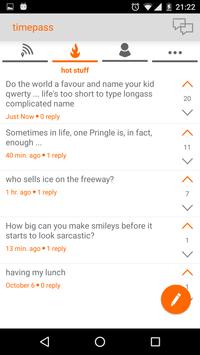 timepass is about enjoying the moment, participating in a live, ongoing, stream of conversation that’s happening all around you. Post, share, joke around and just go with the flow.