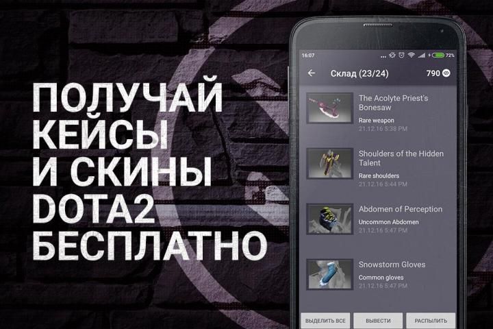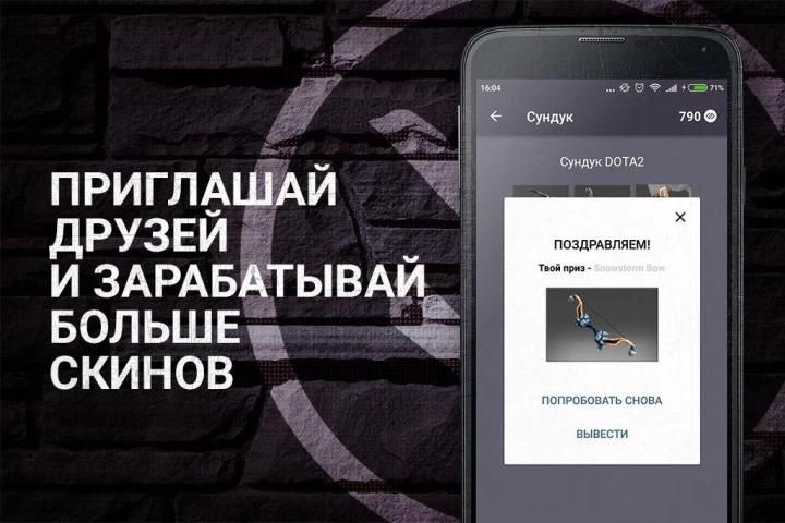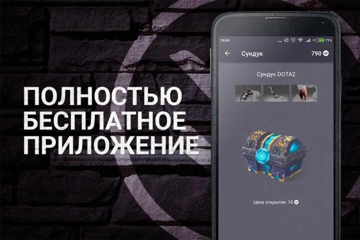 Простое приложение, которое позволит Вам не только симулировать открытие сундука в Доте, но и выигрывать реальные скины выводя их на свой аккаунт бесплатно!