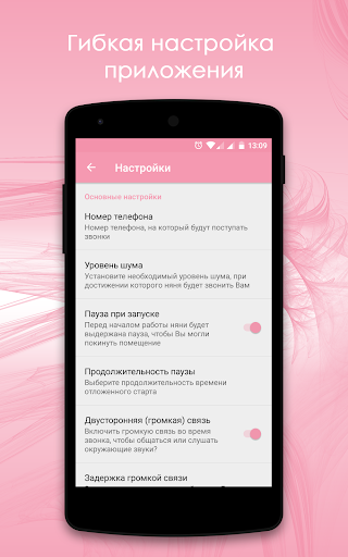 Выберите номер телефона из телефонной книги либо введите его с клавиатуры. Это номер, на который будут поступать звонки от радио няни, когда окружающий шум превысит установленный уровень.