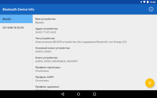 Программа показывает следующую информацию о Bluetooth устройствах: