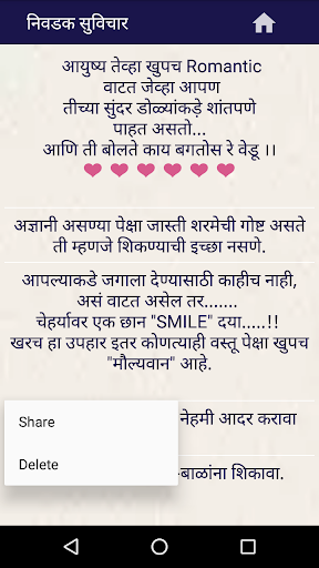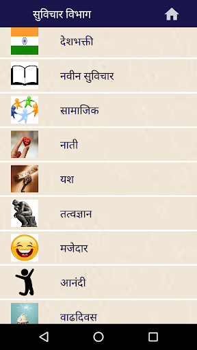 Это приложение предоставляет вам различные категории «Маратхи»Или ' Marathi Suvichar 'И хорошая мысль в маратхи разделяет эти сердечные линии Сувичара с друзьями или близкими или в вашем кругу, через который можно осознать важность жизни.Потому что воображение важнее знания.