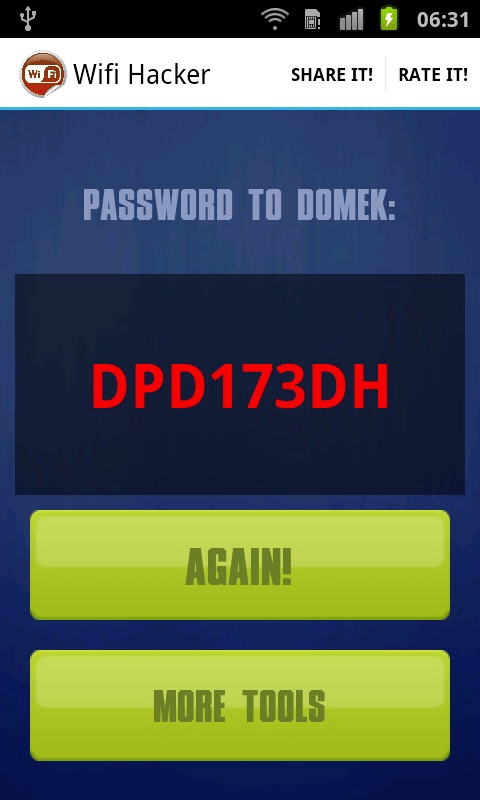 Do you want to prove to your friends that you are a real hacker? Free Wi-Fi hacker for Android is now available! Get free wifi hacker and show your friends that you are a real hacker! Of course this app is just a prank! It's simulation of hacking wifi network! If you want to get faster internet you should connect to wi-fi network! If the network is open - you can just connect to it and use free faster internet for free! But what to do if the wifi network is secured with WPA, WEP or WPA2? You should get wifi password! This app simulates hacking into wi-fi network and getting wifi password! Of course it is only a prank so it will give you not real wifi passwords. It's only a simulation! Remember that this wifi hacker is free! How to use free wifi hacker prank: 1. Open 'wifi hacker' on your Android 2. Scan for available wifi networks in range 3. Select wi-fi network which you want to hack. Hacking progress will start. After few seconds you will see wifi password. Of course it will be random password. But your friends will think that you are a real hacker! Download free wifi hacker today!