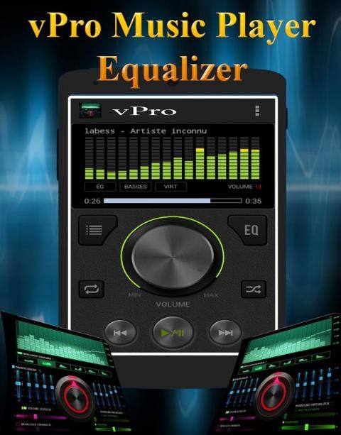 Vpro Музыкальный плеер Эквалайзер Слушайте правильную музыку, где бы вы ни находились. с мощным эквалайзером, быстрый поиск всех музыкальных файлов, пользовательские фоне кожи, свободной, чтобы получить это идеальный аудио-плеер и медиа-плеер.