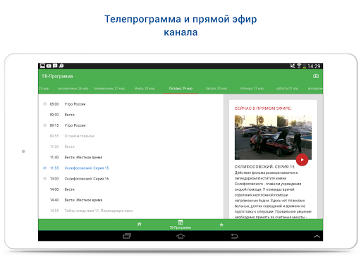 - Хотите знать, какие новинки телеэфира ждут вас на этой неделе, откройте удобную и понятную ТВ-программу в приложении. А если что-то интересное уже идет, смотрите онлайн эфир канала прямо здесь и сейчас!