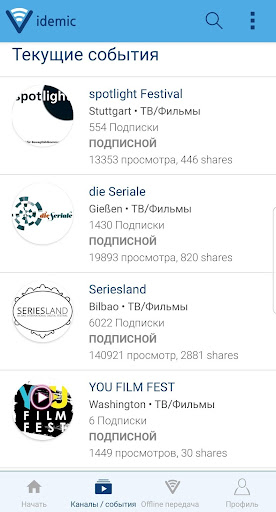 Примите участие в мероприятии видео партнера и получите уведомление в любое время, когда вы можете скачать making-ofs из фильмов или сериалов, тематических исследований или промо-видео на вашем телефоне, которые будут доступны только для участников фестиваля или симпозиума и не будут опубликованы через Интернет.