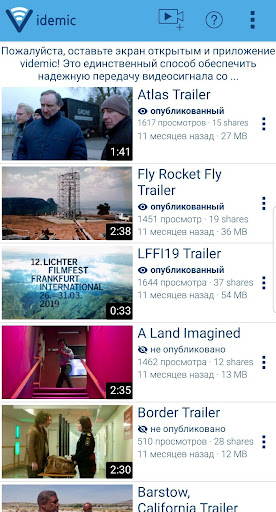С videmic Вы можете получить или отправить видео с музыкального концерта, в кинотеатре, на показах мод, спортивных соревнованиях, в клубах или других местах прямо на Ваш смартфон и бесплатно просматривать их в режиме оффлайн. Вам не нужно устанавливать специальный видео проигрыватель, чтобы смотреть фильмы бесплатно. Нет ничего проще, чем передать видео без Wi-Fi и расхода трафика! Даже если телефон просто лежит в кармане, вы можете смотреть любое видео в специальном режиме.