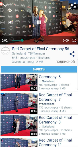 - Получать живые записи на кинофестивалях и музыкальных фестивалях и других мероприятиях на вашем телефоне для просмотра их в любом месте оффлайн позже