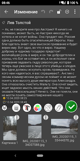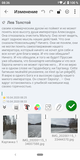 Вы можете прикладывать и хранить вместе с Вашими заметками любые файлы изображений с вашего устройства. Все вложения можно просмотреть позже в заметке. Если вложения больше не нужны то их можно удалить