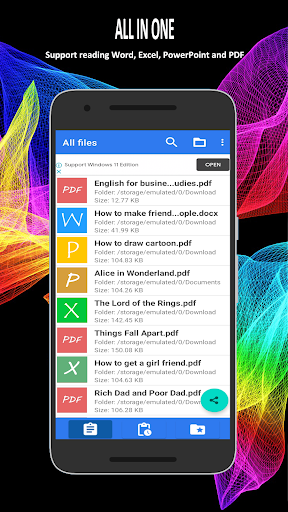 Просмотрите все файлы документов: в приложении перечислены все слова, Excel, PowerPoint, PDF -файлы в вашем устройстве в одном месте, чтобы вы могли легко прокрутить его.: Быстро найдите любой желаемый файл с простой опцией поиска.