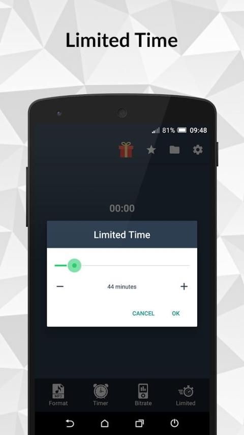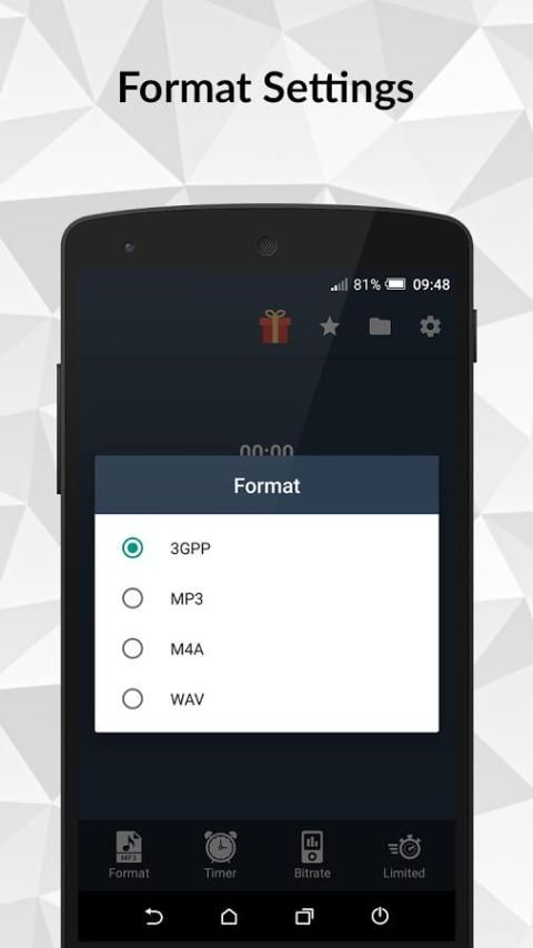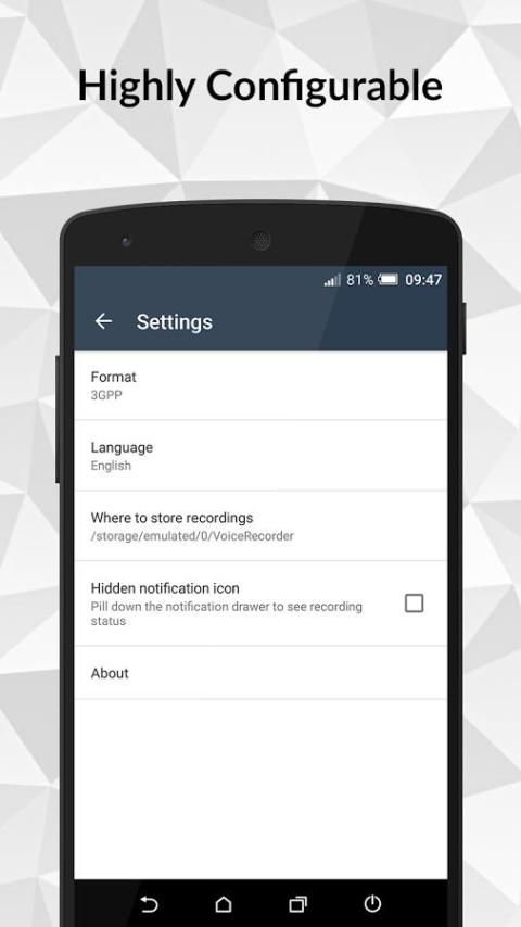 диктофон является приложением записи голоса высокого качества, хранить записи, как голосовые напоминания, это приложение использует высокое качество (8-41.1KHz частоты дискретизации), чтобы дать вам лучший опыт записи.