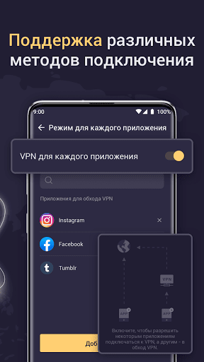 3. Режим для каждого приложения. Вы можете настроить определенные приложения для обхода VPN