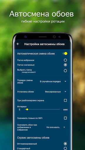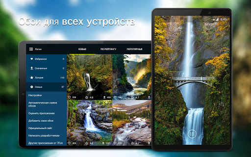 • Автоматическая смена заставки с заданным интервалом (живые обои водопади)