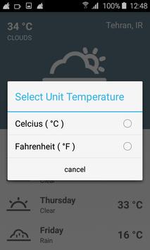 для перемен между Цельсией и Фаренгейтом Нажмите на температуру.