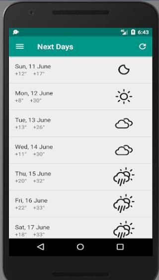 - Более подробная информация: восход времени, время захода солнца, влажность, вероятность осадков, видимость, скорость ветра, чувствительна к температуре и т.д.