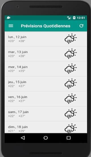 - Более подробная информация: время восхода, время заката, влажность, вероятность осадков, видимость, скорость ветра, температура и т.д. чувствительной
