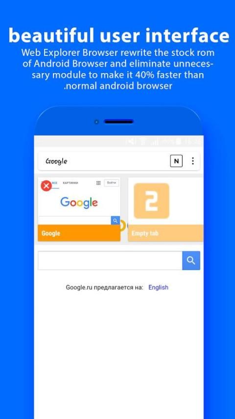 Web Explorer Browser (веб-браузер для андроид) переписать акции ПЗУ Android Browser и устранить ненужный модуль, чтобы сделать его 40% быстрее, чем обычный андроид браузер. Вы можете сравнить наш браузер с некоторыми из браузера на рынке и скорость их далеко позади проводника 11 для Android.