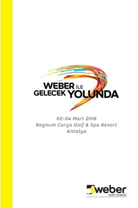 Endüstriyel harç üretiminde dünya lideri Weber, Türkiye’deki iş ortakları ile “Weber ile Gelecek Yolunda!” buluşmasında 02-04 Mart 2016 tarihleri arasında Antalya Regnum Carya Otel’ de bir araya geliyor. Dünya çapında 57 ülkede, 10.000 çalışanı ve 200’e yakın üretim tesisi ile faaliyet gösteren Weber, Türkiye’de 6 fabrikası, 8 bölge müdürlüğü ve yaygın bayi ağı ile hizmet veriyor.