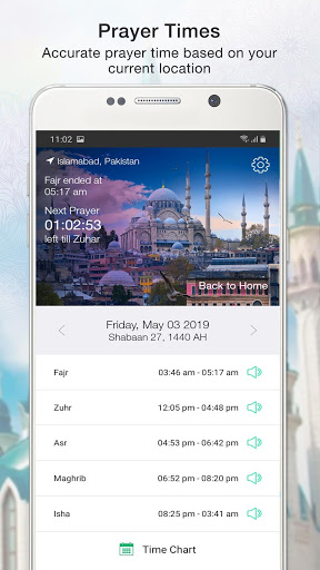 Вы будете уведомлены со звуком прекрасного муэдзина, когда время любой молитвы начинается.