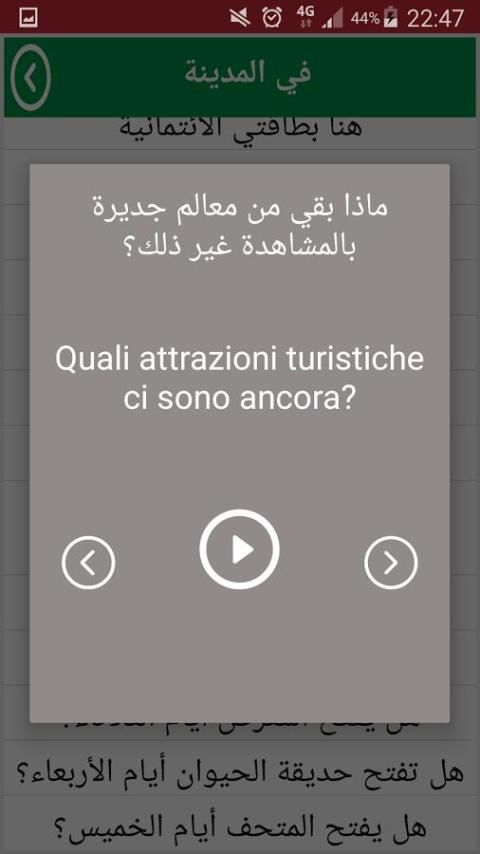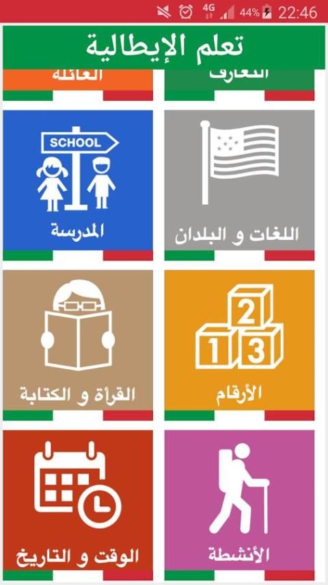Применение Athoi 33 включает в себя более Ознакомиться чем 1000 слов и предложение на арабском и итальянском языках, как в письменной форме и голосом (с оригинальным произношением слова) и уроки заключаются в следующем: