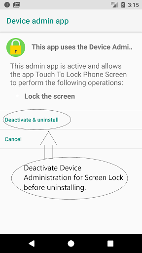 2.Deactivate Device Administration for Screen Lock before uninstalling.