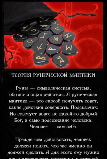 Руны - это древнейшая магическая система, представляющая основные силы природы. На протяжении многих столетий руны использовались для предсказаний и принятия важных решений. Как и гадание на игральных картах или гадание на Таро, руны всегда очень точно предсказывают будущее и помогают выбрать правильную линию поведения.