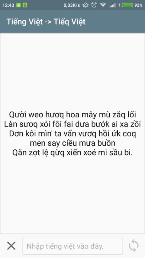 Это инновационное приложение просто Вьетнамский помогает нам преобразовывать рукописный текст в новом вьетнамский: вьетнамское -> Tieq Вьетнам, Образование -> Зао Zuk ... Это приложение анонимная ссылка, то и тест место для пользователей.