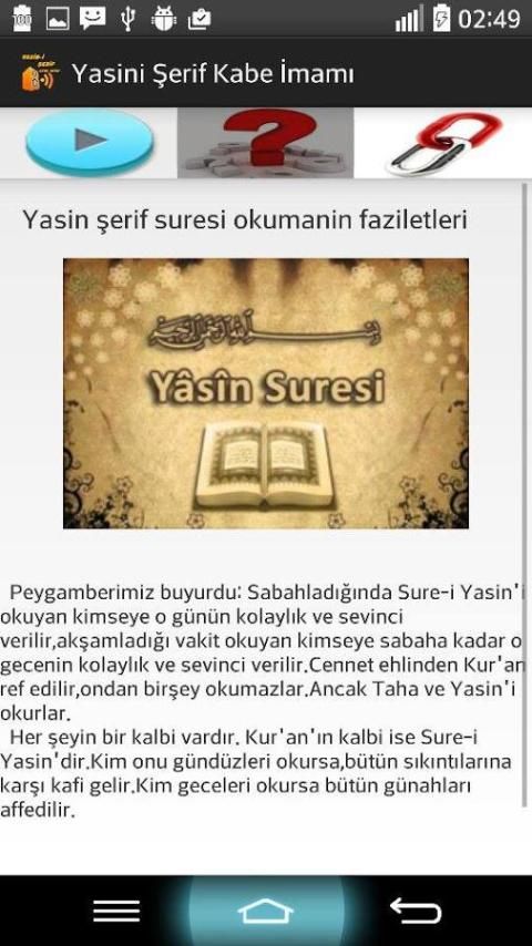 "Конечно, есть время vardır.kendi читает Коран так, что прощение olunur.dikkat edin.o eder.dinle заступничества, Сура я-я ysin'dir.sur в müim Ясин призвал Торы." (Или Посланник Аллаха müim Что мы имеем в виду его спросили) Милостивого Пророка: владелец umumileştir мир и дальнейшем, я menu.Good газа на него в дальнейшем опасения giderir.v ко всякому доброму делу он двадцать, если читать (Сверхдолжные) вознаграждение паломничества verilir.k Я думаю, что Бог слушает его Путь тысяч динаров, как указано благотворительной награды гвоздь olur.k он был автором вода удаляет все виды болезней с помощью, если интерьера, в тысячу световых, ездить близко, тысяч милосердия, тысячи Rafet, все болезни и проблемы из тысяч наведения girer.o удалены ".