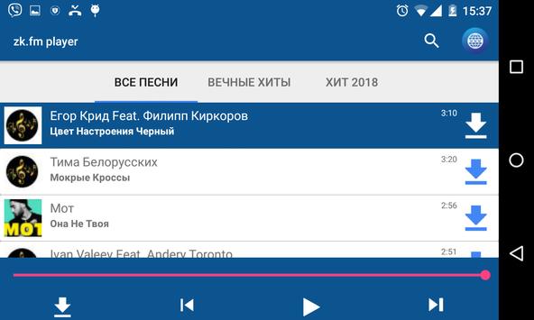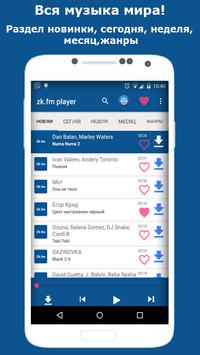 В приложении zk.fm Player вы можете слушать онлайн или скачать бесплатно самые популярные и рейтинговые песни.