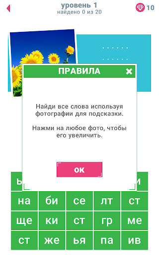 Каждый уровень содержит подсказки в виде фото. С каждой подсказкой связано 4 слова. Попробуй найти ответ! Нажми на изображение, чтобы его увеличить и попытайся найти слово! Некоторые ответы просты, а некоторые заставят поломать голову.