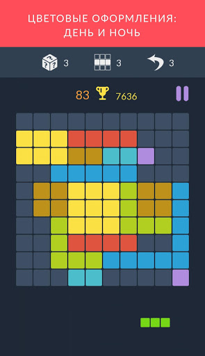 так, чтобы полностью заполнить строку или колонку, цвет значения не имеет. Заполненная линия исчезает. Чем больше фигур на поле, тем сложнее найти свободное место для новой фигуры.
