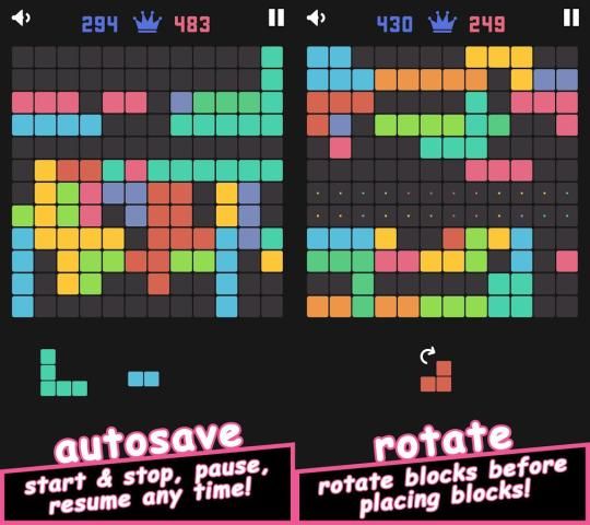 144 Блоки головоломка поставляется с существенным признаком автосохранения, которая автоматически сохраняет состояние игры при выходе, так что вы всегда можете продолжить свой прогресс позже. Кроме того, вы можете вращать перед размещением блоков!
