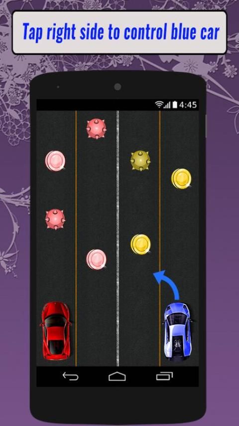 -Tap На правой стороне экрана, чтобы контролировать синий автомобиль.