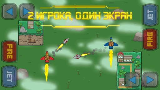 2 Players Duel - это захватывающая дуэль для 2 игроков на одном устройстве. Вы и ваш противник получаете в свое управление реактивные самолеты, задача - уничтожить противника и при этом, не быть подбитым самому. Игра продолжается до 10 побед одного из игроков, столкновение с препятствием означает проигрыш в раунде, одновременная гибель - ничью, вот и все правила! Играйте с друзьями в режиме hotseat, используйте тактику и мастерство управления самолетом, станьте лучшим в этом воздушном бою, присоединяйтесь сейчас!