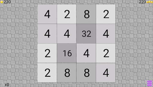 Ирок может скинуть все плитки игрового поля в одну из 4 сторон. Если при сбрасывании две плитки одного номинала «налетают» одна на другую, то они слипаются в одну, номинал которой равен сумме соединившихся плиток. После каждого хода на свободной секции поля появляется новая плитка номиналом «2» или «4». Если местоположение плиток или их номинал не изменится, то ход не совершается.