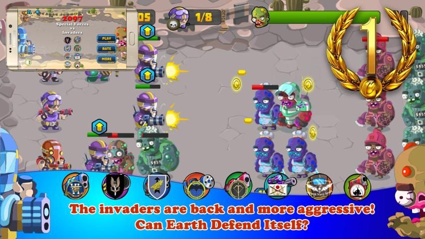 ✔ 9 типа захватчиков с различной способностью (блоком сублимационной смертники ...)