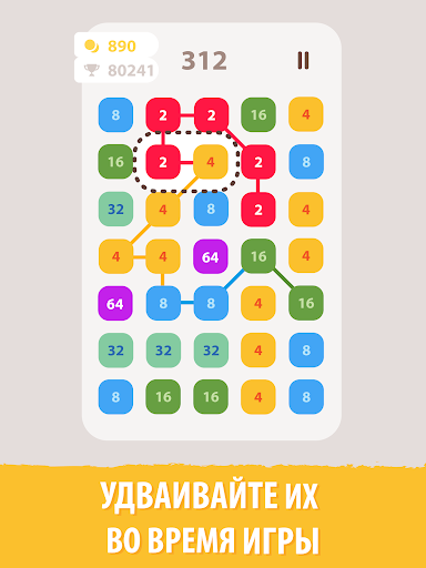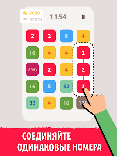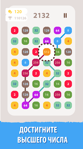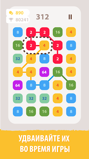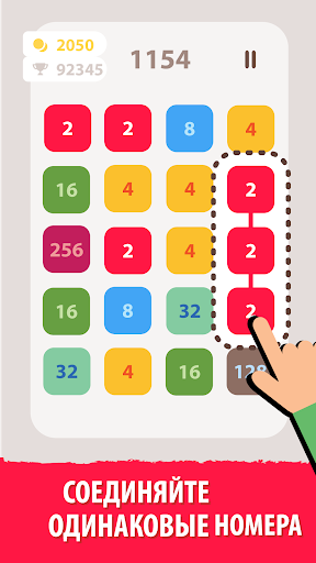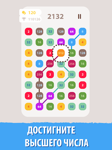Это захватывающая игра-головоломка. Соедините одни и те же числа и выигрывайте очки в этой веселой бесплатной игре с числами. Начните с базового номера. Объедините его с одинаковыми номерами или вдвое больше. Создайте максимально длинные ссылки. Достигните самых высоких плиток и наивысшего балла!