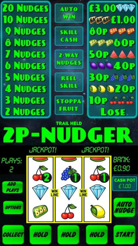 2р Nudger Fruit Machine для развлечения только, нет реальных денег для ставок. Коэффициенты являются справедливыми для вашего удовольствия, что делает его еще более увлекательным, чем паб фруктов игровой автомат!