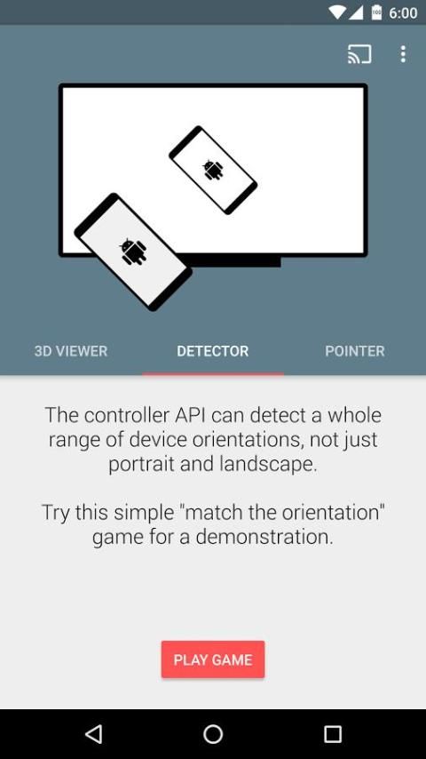 Это Android Эксперимент превращает ваш телефон в 3D-контроллер. Он определяет ориентацию устройства в 3D-пространстве (где он направлен и как он поворачивается) и делает эту информацию доступной через простой API.