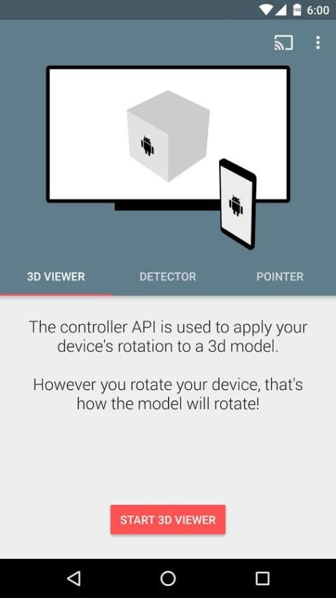 В этом приложении вы найдете 3 демо-версии, которые используют этот API. Первое касается ориентации вашего устройства к 3D-модели. Второй показывает широкий диапазон ориентаций API может обнаружить и третий превращает ваше устройство в лазерный указатель тренажере.