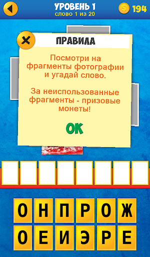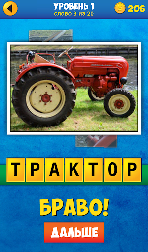 • Фото открываются по одному. Угадай слово открыв меньше картинок и заработай больше монет!