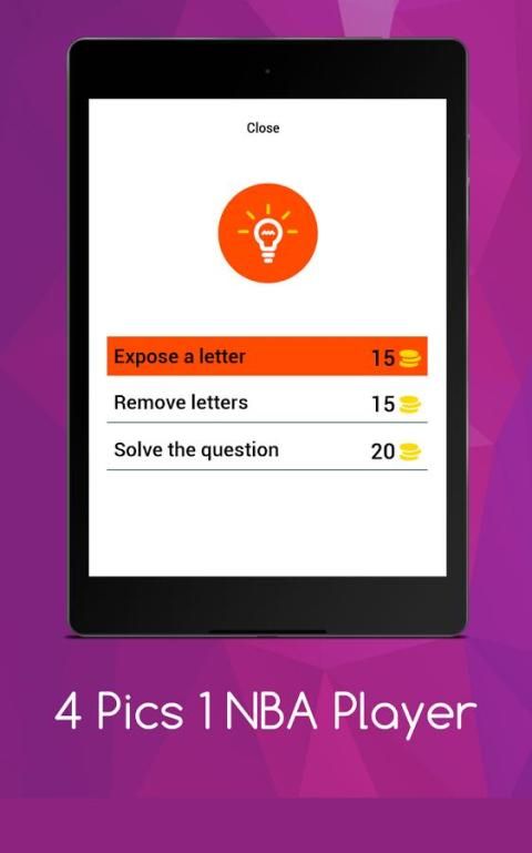 Игра очень проста и, как вы получаете уровни становится все труднее. Ваша цель в 4 Pics 1 игрока НБ угадать, что игрок называется смотреть 4 фото на экране, связанный с баскетболистом. Очень привыкание. У вас есть письмо панель в днище, где имя игрока есть. Выберите правильные, чтобы пройти уровень.