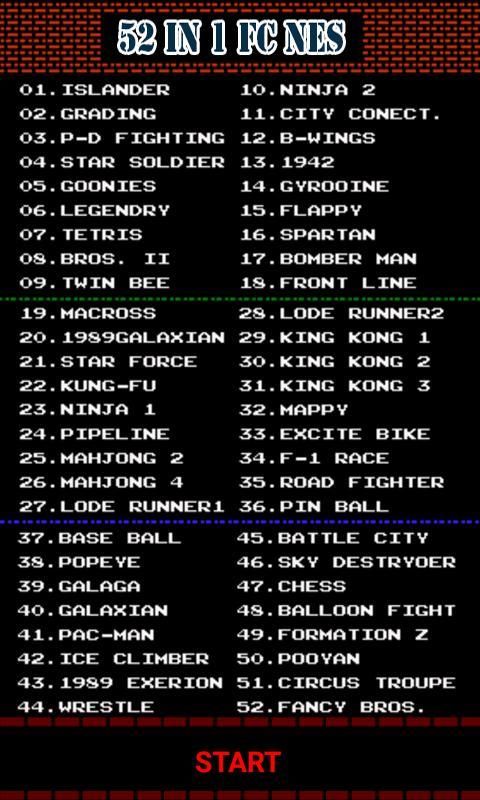Найти самые популярные приложения здесь! 30,000+ пользователи скачали последнюю версию 52 IN 1 FC NES в 9Apps бесплатно каждую неделю! Это делает приложение видеть в популярном товаре, вот очень хорошо на мой взгляд. Это горячее приложение было выпущено в 2018-01-02. Это очень популярное приложение в россии сейчас.
