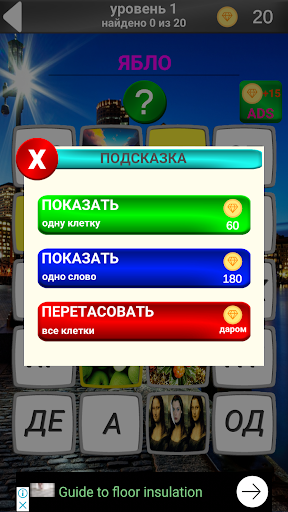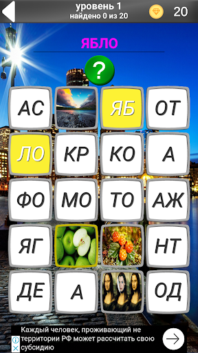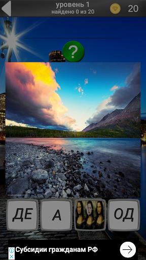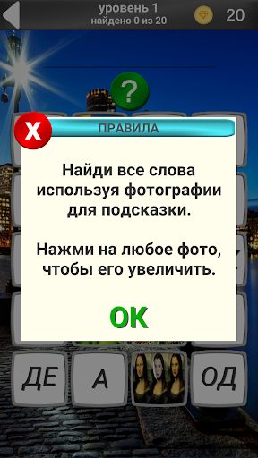 Внимание!!! Обновление версии 1.0.5 до версии 1.0.6 приведет к потере игрового прогресса!!!! В версии 1.0.6 мы добавили награды за просмотр рекламы, переписали логику игры и обновили графику.В данной игре представлены 620 слов и столько же картинок. Нужно угадать слово изображенное на картинке. В основном слова используются в повседневной жизни, но есть и такие которые встречаются крайне редко в повседневном разговоре. Ваша задача угадать слово изображённое на картинке. Игра способствует развитию логического мышления. Приятного Вам отдыха.